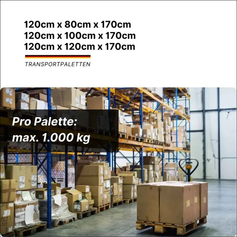 Die Ware muss transportsicher auf stabilen Paletten verpackt sein – möglichst mit Kantenschutz, Stretchfolie, Umreifungsbändern oder Luftpolster. Achten Sie darauf, dass keine Teile überstehen. Jedes Packstück muss mit einem Versandetikett versehen sein. Bei Fragen kontaktieren Sie uns bitte über unsere Kontaktseite.