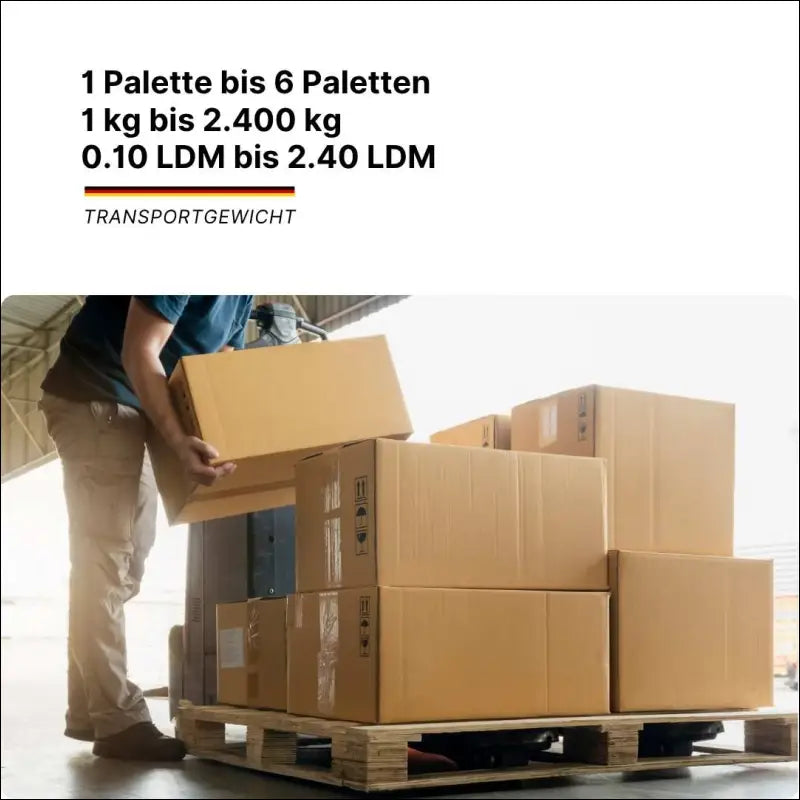 Die Ware muss transportsicher auf stabilen Paletten verpackt sein – möglichst mit Kantenschutz, Stretchfolie, Umreifungsbändern oder Luftpolster. Achten Sie darauf, dass keine Teile überstehen. Jedes Packstück muss mit einem Versandetikett versehen sein. Bei Fragen kontaktieren Sie uns bitte über unsere Kontaktseite.